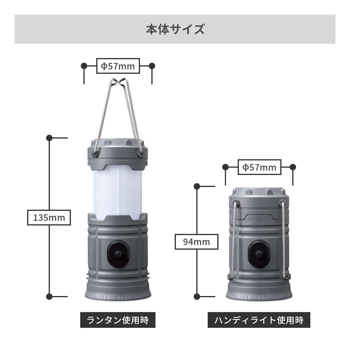 ランタン使用時:φ57×135mm ハンディライト使用時:φ57×94mm |
